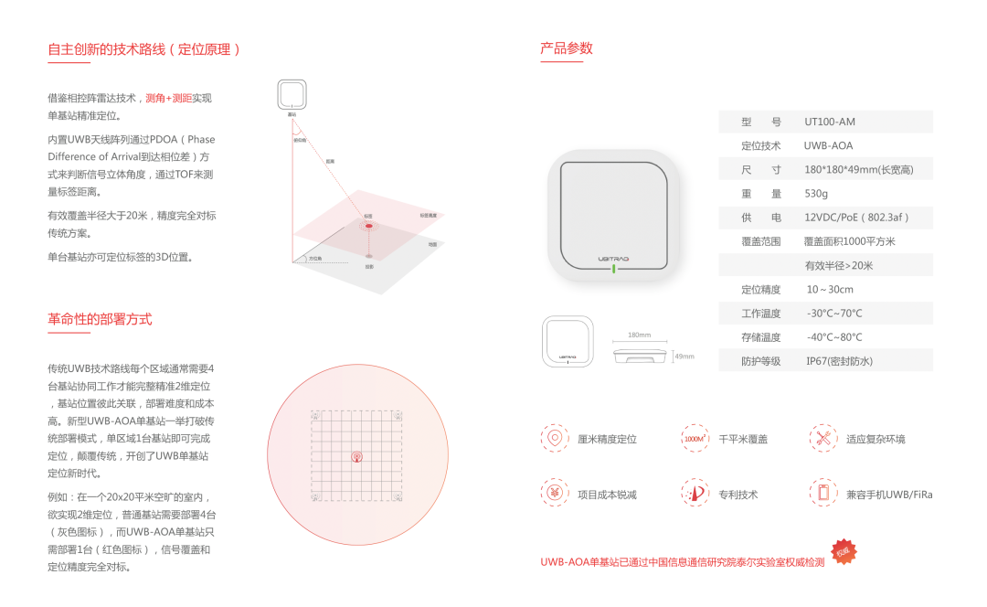 該方案在法院數(shù)字法庭、智慧監(jiān)所的智慧監(jiān)倉建設(shè)中降本尤為突出。以某法院為例,數(shù)字法庭建設(shè)中,采用傳統(tǒng)UWB高精度定位需要4臺基站,但最新的UWB-AOA方案只需要1臺基站,優(yōu)于藍牙AOA,且不因?qū)痈呦拗聘采w范圍,其有效覆蓋半徑20m完全滿足所有數(shù)字法庭的建設(shè),并且在一維環(huán)境下,支持和傳統(tǒng)的UWB基站混用。使得整個方案在設(shè)計、部署上都實現(xiàn)了巨大的降本優(yōu)勢。