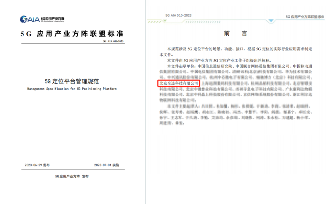 五、全跡科技參編制定《5G定位平臺(tái)管理規(guī)范》,該規(guī)范由信通院、聯(lián)通、移動(dòng)、電信等企業(yè)牽頭,由5G應(yīng)用產(chǎn)業(yè)方陣于2023年6月29日發(fā)布,2023年7月1日實(shí)施。規(guī)范涉及5G定位平臺(tái)的場(chǎng)景、功能、接口等。