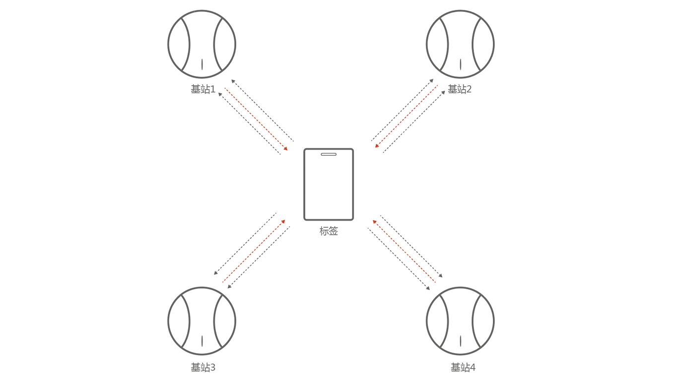 標(biāo)簽和各個(gè)基站無線信號的交互如下圖所示: