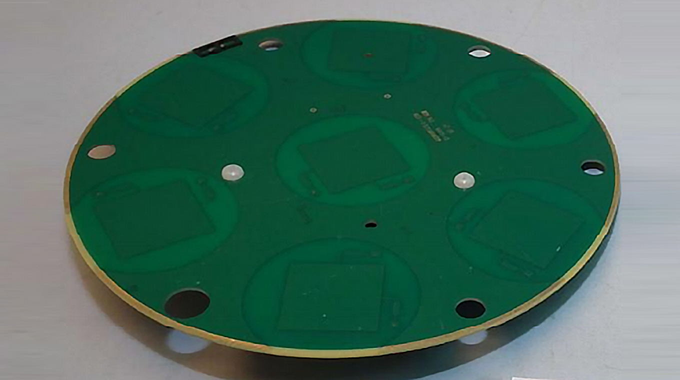 還有些次要原因造成藍牙AOA俯仰角小,比如藍牙天線是2.4G,頻率比UWB低,天線尺寸比UWB大,很難做出小尺寸同時兼顧0~90°全范圍俯仰角的天線設計。藍牙天線通常采用貼片排布的PCB天線(下圖),在測量俯仰角時,隨著俯仰角變大角度分辨率逐漸降低,性能變差。